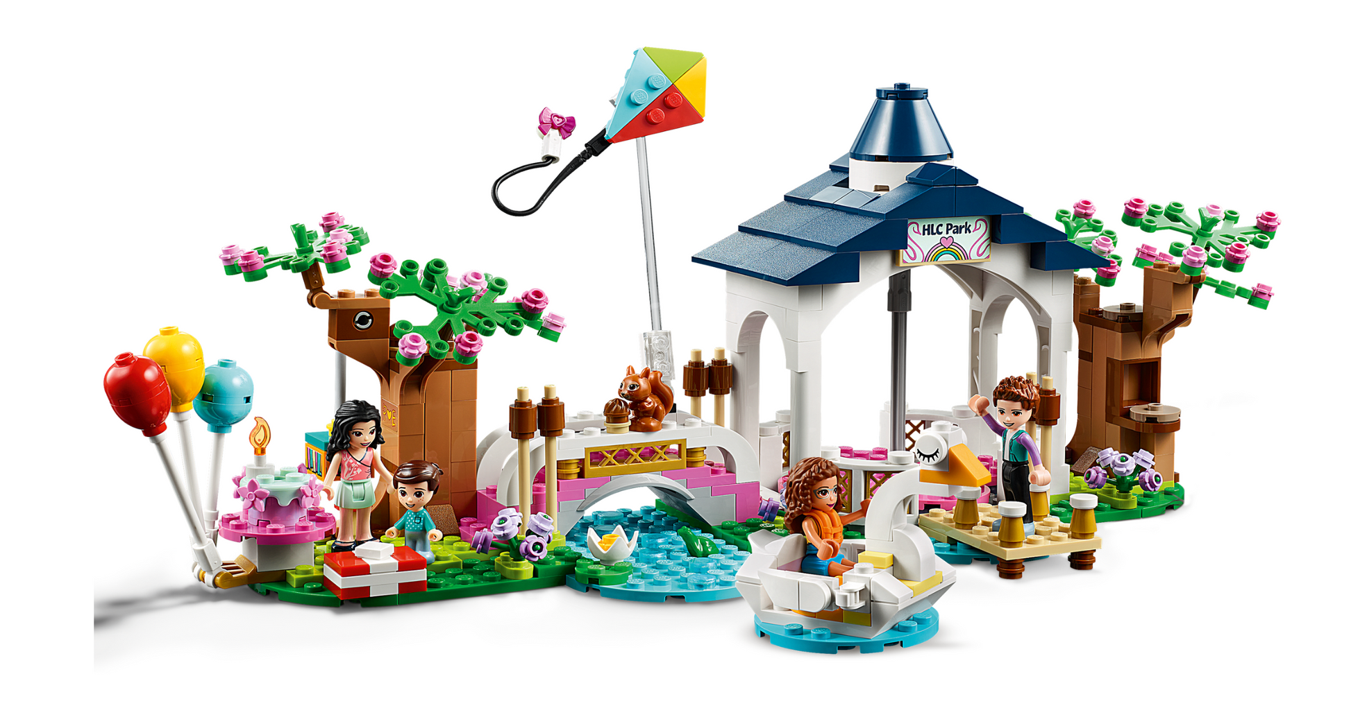 Avec de nombreux éléments de jeu, plus 3 mini-poupées et 1 micro-poupée, cet ensemble LEGO Friends permet aux enfants d'utiliser leur créativité pour inventer des histoires d'amitié amusantes. Ils peuvent frapper la piñata pour les enfants et libérer les bonbons, rejoindre leurs amis sur la piste de danse tournante du belvédère ou naviguer autour du lac dans l'élégant bateau-cygne. Il contient également une multitude d'accessoires mignons, tels que des ballons LEGO, un cerf-volant avec une queue flexible et une noix pour l'écureuil, pour aider à lancer le jeu imaginatif.