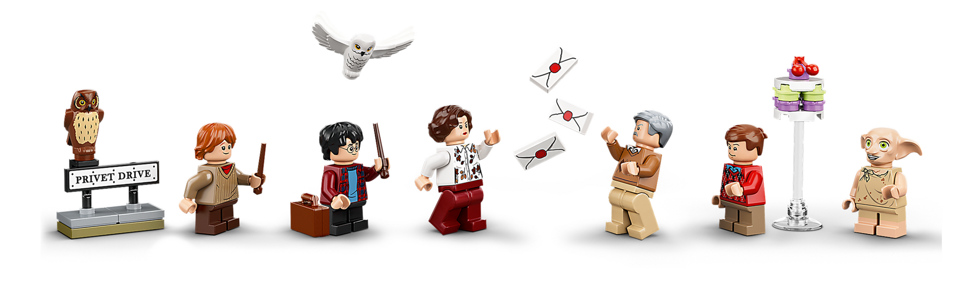 Les fans de Harry Potter s'amuseront sans fin avec les figurines de Harry, Ron Weasley™, Dudley Dursley, Vernon Dursley, Petunia Dursley et Dobby™. Ils apprécieront le jeu imaginatif dans toute la maison à 2 étages entièrement équipée, notamment en localisant le placard secret de Harry sous les escaliers et en activant le flot de lettres d'acceptation de Poudlard™ via la boîte aux lettres.