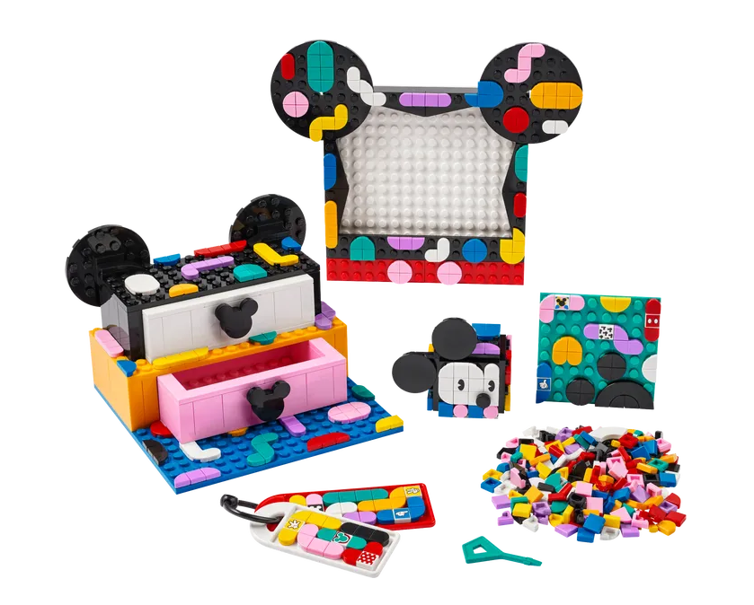 • Make, decorate, use – Wow any trendsetting kid or crafts fan with this LEGO® DOTS ǀ Disney Mickey Mouse & Minnie Mouse Back-to-School Project Box (41964). Creative fun starts when they open the box