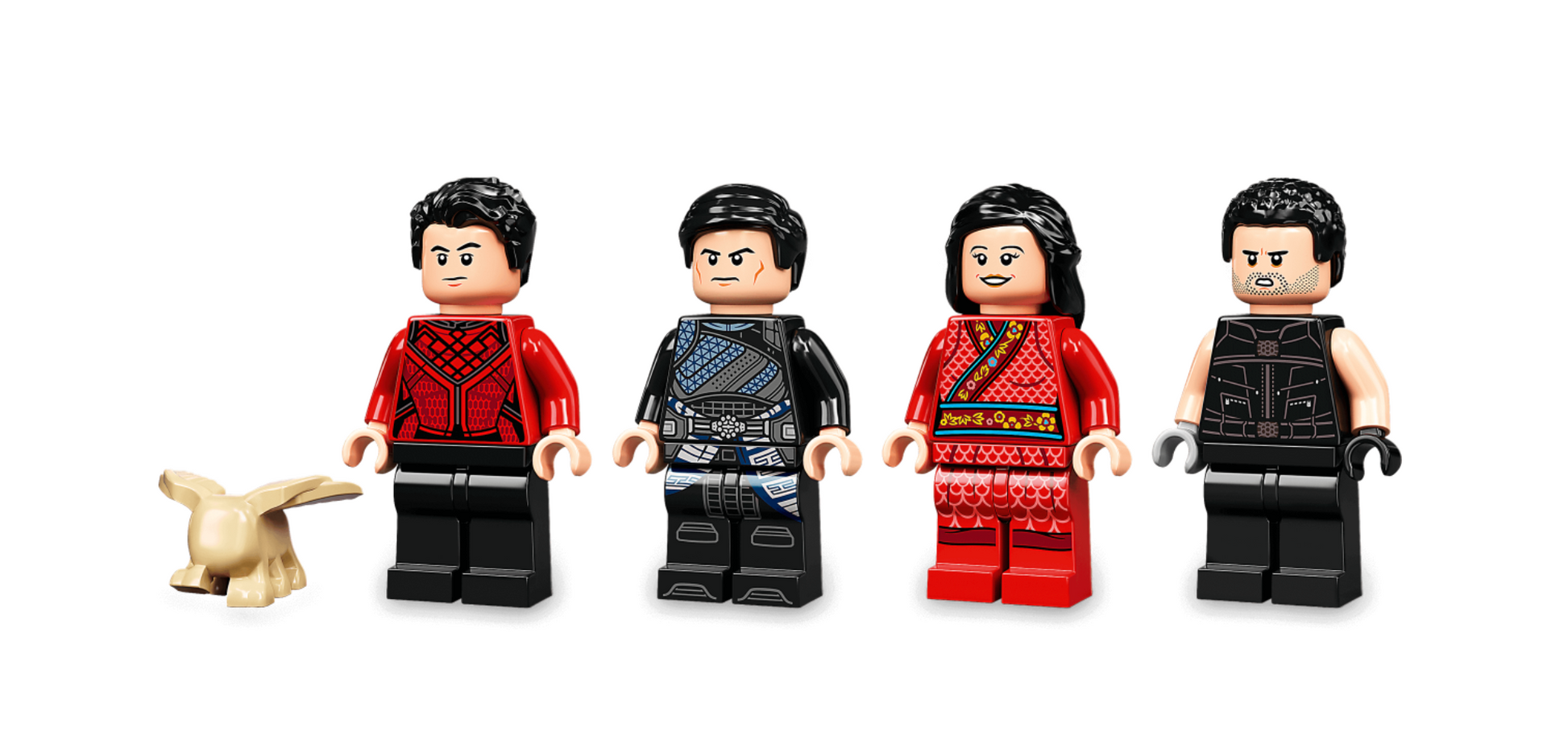 • Includes 4 minifigures – Shang-Chi, Katy, Wenwu and Razor Fist, plus a Morris figure, an SUV, 2 shooter turrets and 2 motorcycles.