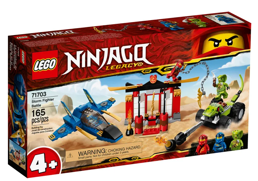 • This Storm Fighter Battle NINJAGO® Legacy set features a cool ninja jet with folding wings and a toy car with shooter for ninja fans to stage exciting battle scenes from the NINJAGO Masters of Spinjitzu TV series.