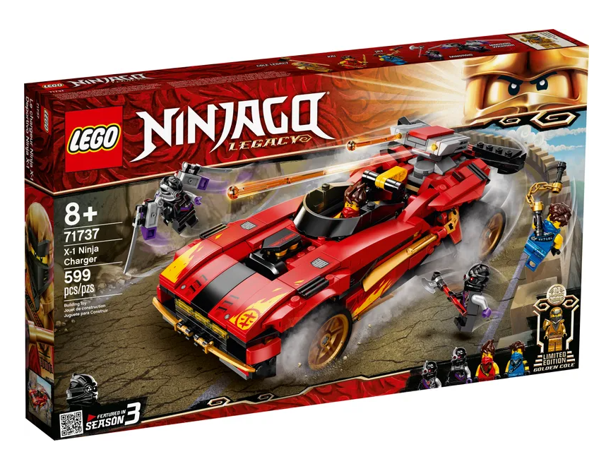 • LEGO® NINJAGO® X-1 Ninja Charger (71737) is a 2-in-1 modern update ninja vehicle with a shooting toy car and ninja motorcycle to give kids a world of exciting play possibilities.